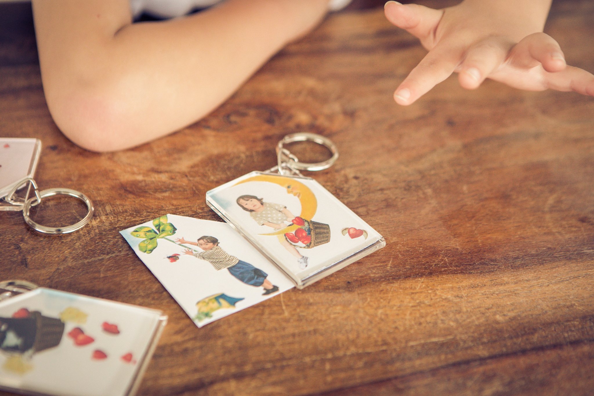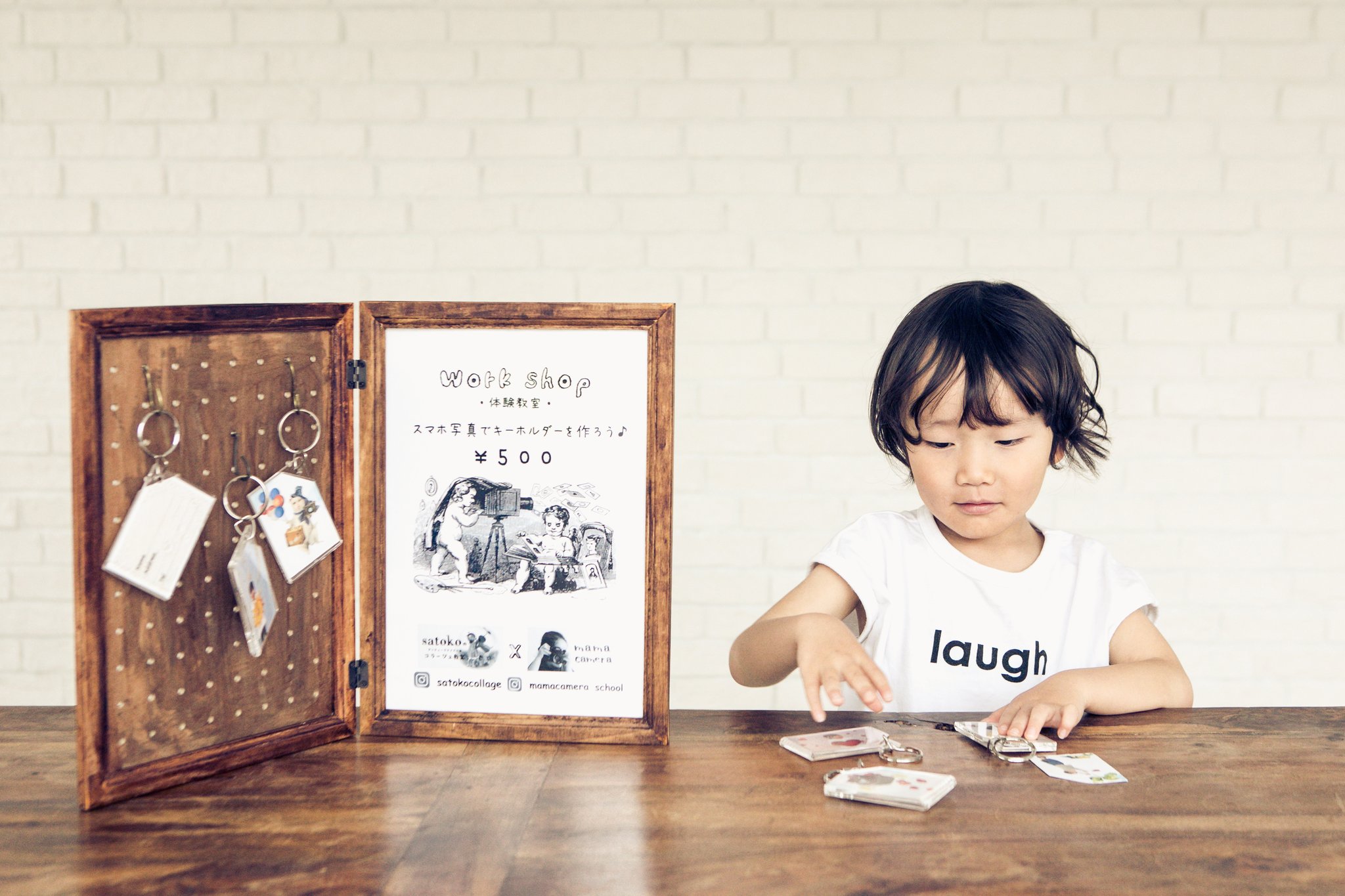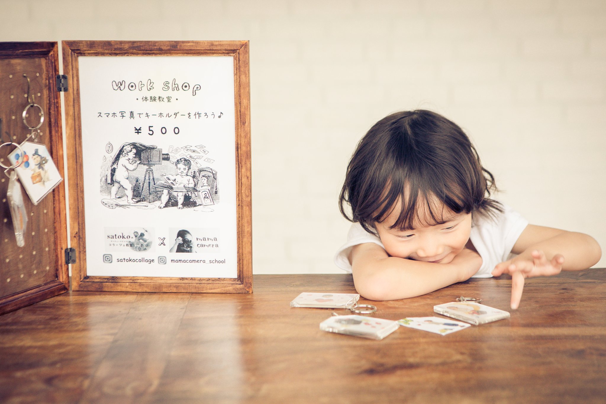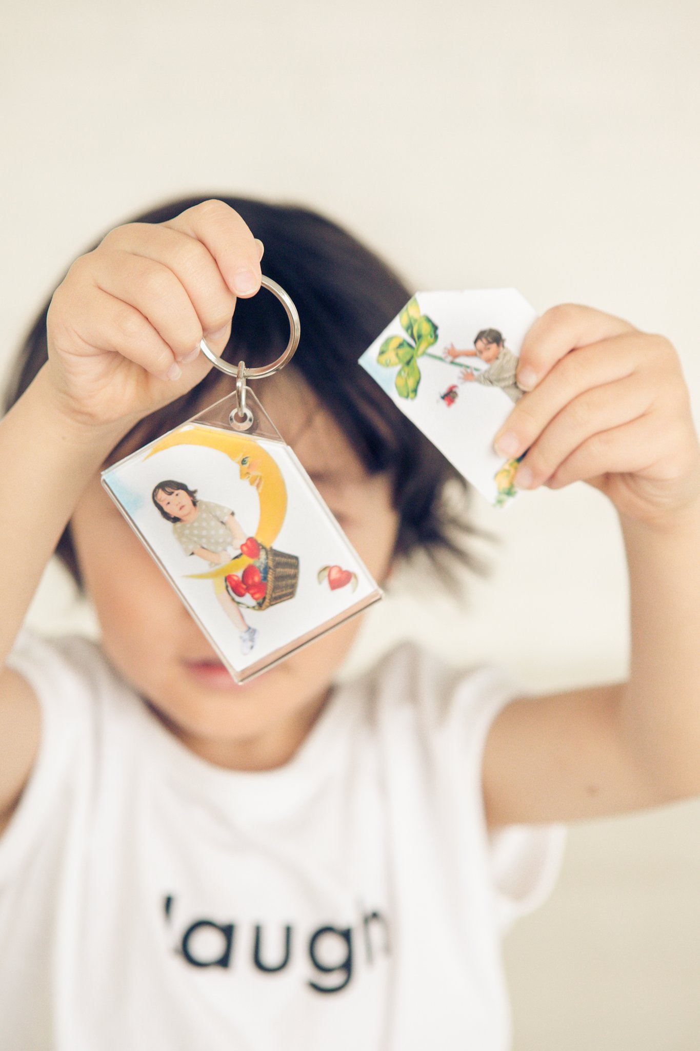 お子様の写真や、ペット、お気に入りの写真をコラージュして、オリジナルキーホルダーが作れます。
