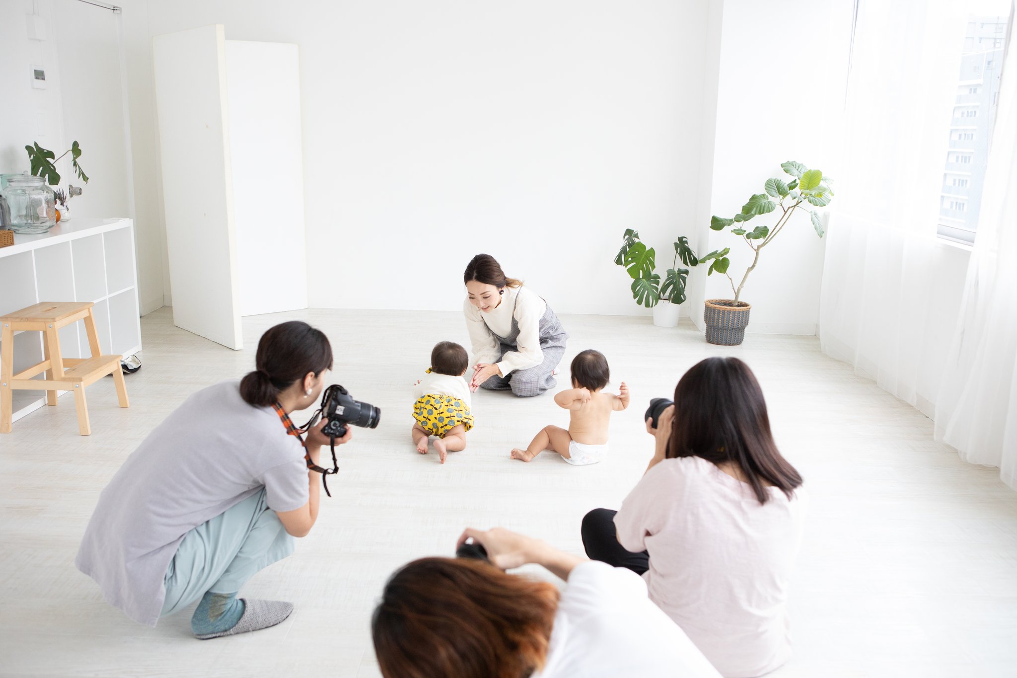 おしゃれな自然光スタジオで、小物や背景のイメージを生かした撮影。