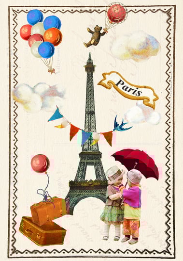 8月のコラージュ教室のテーマは「ボンボヤージュ」、パリ旅行。